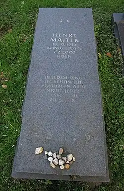 Ruth Maitek starb 1974,[4] Henry Maitek überlebte seine Frau um mehr als 30 Jahre. Er starb 2007 in Köln im Alter von 84 Jahren. Ihre Gräber befinden sich auf dem Jüdischen Friedhof Köln-Bocklemünd.
