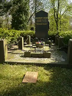 Eine Gedenktafel[4] für die Getöteten der Herbert-Baum-Gruppe und das Grab Baums befinden sich auf dem Jüdischen Friedhof Weißensee in der Ehrenreihe im Feld A1-G1. Das Grab ist als Ehrengrab der Stadt Berlin gewidmet. Die auf das Hauptportal des Friedhofs führende Straße heißt seit 1951 Herbert-Baum-Straße.[5]