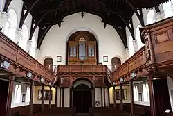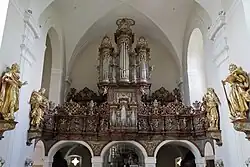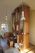 II/P | 29 | Die ursprüngliche, 1930 bei Josef Panhuber in Auftrag gegebene und 1933 fertiggestellte Orgel war mit pneumatischer Traktur ausgestattet, wurde aber 1962 von Philipp Eppel auf ein elektropneumatisches System umgebaut. Als Herbert Gollini 1980/81 eine neue Orgel errichtete, konnten 19 Register der Panhuber-Orgel wiederverwendet werden, 10 Register wurden neu angefertigt. Im Zuge der 2002 von Achim Reichmann durchgeführten Renovierung wurde die Trompete 8', deren Becher durch Gollini von Panhuber übernommen worden waren, gegen eine neue getauscht.[4] |