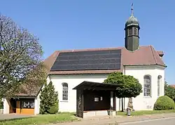 - Die evangelische Kirche von Tutschfelden von 1806 wurde wahrscheinlich nach einem von Friedrich Weinbrenner überarbeiteten Entwurf gebaut.[30][31]