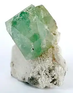 Herderit, veraltet u. a. auch als Allogonit oder Haplotyper Allogonit sowie als Fluorherderit bekannt, ist ein sehr selten vorkommendes Mineral aus der Mineralklasse der „Phosphate, Arsenate und Vanadate“. Es kristallisiert im monoklinen Kristallsystem mit der chemischen Formel CaBe[(F,OH)|PO4],[8] ist also chemisch gesehen ein Calcium-Beryllium-Phosphat mit zusätzlichen Fluorionen. Die in den runden Klammern angegebenen Verbindungen bzw. Elemente F und OH können sich dabei in der Formel jeweils gegenseitig vertreten (Substitution, Diadochie), stehen jedoch immer im selben Mengenverhältnis zu den anderen Bestandteilen des Minerals.