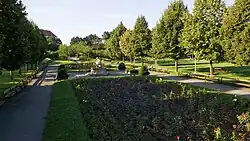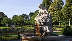 Im Zentrum des Parks befindet sich, flankiert von Rosenbeeten, ein 1931 errichteter Brunnen mit der von Franz Sautner gestalteten Steinplastik „Meerjungfrau“. Im westlichen Teil des Parks befindet sich die über 6.000 m² große Jugendsportanlage Herderpark[1] sowie eine knapp 400 m² große, eingezäunte Hundezone. Das 1929 errichtete Familienbad liegt im nördlichen Teil des Areals und verfügt über ein Becken mit rund 520 m² Wasserfläche. Das in den 1990er Jahren generalsanierte und denkmalgeschützte Gebäude des Bades wurde im Jänner 2009 durch einen Brand schwer beschädigt.[2] Nach Abriss der Brandruine wurde das Holzgebäude im Einvernehmen mit dem Bundesdenkmalamt rekonstruiert, im Juli 2009 erfolgte die Wiedereröffnung des Bades.