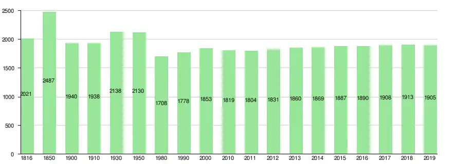 Bis 1850 wuchs die Bevölkerung durch einen hohen Geburtenüberschuss rasch (1816–1850: + 23,1 %). In den fünfzig Jahren bis 1900 fiel sie durch Abwanderung in die Industriegebiete massiv (1850–1900: − 22,0 %) – bis 1880 langsam, danach schneller. Im ersten Jahrzehnt des 20. Jahrhunderts stagnierte sie, wuchs dann bis 1930 wieder (1910–1930: + 10,3 %). Nach einer weiteren Stagnationsphase von 20 Jahren folgte eine weitere starke Abwanderungswelle bis 1980 (1950–1980: − 19,2 %). Ab 1990 begann ein leichtes Wachstum, welches bis heute (schwächer werdend) anhält (1990–2010: + 2,3 %).