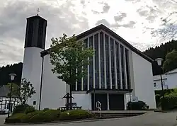 Sehenswert ist die ortsbildprägende katholische Pfarrkirche St. Nikolaus, konsekriert im Jahr 1965. In der Kirche befindet sich eine Pilgerstation des Jakobus-Pilgerweges, der von Paderborn nach Elspe führt.