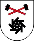 Blasonierung: In Silber über einem schwarzen Wasserrad zwei ins Andreaskreuz gestellte, rotgestielte schwarze Hämmer. Beschreibung: Silber und Schwarz deuten auf die frühere Zugehörigkeit zum Kurfürstentum Köln hin. Die amtliche Genehmigung erfolgte am 29. Dezember 1962.[4] |