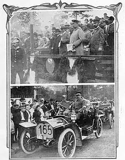 Hubert von Herkomer war unter den Geladenen, war fasziniert und wollte Derartiges auch in seinem ursprünglichen Heimatland abhalten lassen. Allerdings gewann das Rennen von 1903 der Belgier Camille Jenatzy in einem 60 PS DMG aus Cannstatt (also einem Mercedes), wodurch Deutschland zum Austragungsort 1904 wurde. Der frühest sinnvolle Zeitpunkt für ein ähnliches Ereignis war demgemäß 1905. Herkomer gestaltete selbst die 40 kg schwere Sieger-Trophäe aus Sterlingsilber[4] und gewährte dem Sieger eines der damals begehrten Porträts aus seiner Hand. Nicht zuletzt wegen seines persönlichen Engagements fanden sich Teilnehmer aus bedeutenden Kreisen des Hoch- und des Geldadels ein: Mit dabei waren beispielsweise Prinz Heinrich von Preußen (der Bruder des Kaisers), Herzog Ludwig in Bayern, Prinzessin von Isenburg (goldene Plakette 1907), ein Herzog von Arenberg, Prinz Josef von Battenberg, der Herzog von Bojano und Lord Montague of Beaulieu.[1] Weiters beispielsweise August Horch, Karl Fichtel, Ernst Sachs, Ernst Büssing, Edgar Ladenburg, Heinrich Opel oder Vincenzo Lancia.[3]