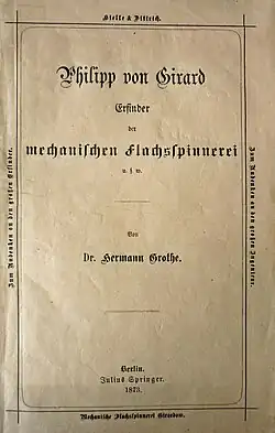 - Philipp von Girard – Erfinder der mechanischen Flachsspinnerei. Julius Springer, Berlin 1863