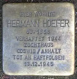 - Am 8. Juni 2012 wurden vor dem Rathaus in Hamburg Stolpersteine für die ermordeten Mitglieder der Hamburgischen Bürgerschaft verlegt, darunter auch ein weiterer für Hermann Hoefer.[3]