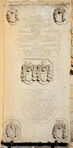 - ↑ Vergleiche die Inschrift auf dem Grabstein v. Ohrs