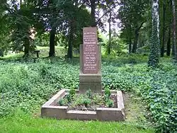 - ↑ Das auf dem Grabstein angegebene Geburtsjahr ist falsch. Bei der Sanierung der Grabstätte im Jahr 1994 war die Korrektur der letzten Ziffer beauftragt, wurde aber nicht ausgeführt, da die Sanierungsgelder aufgebraucht waren.