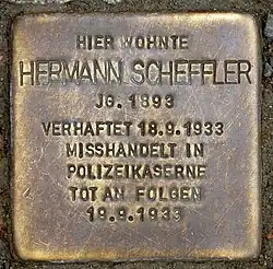- ↑ Hermann Scheffler. stolpersteine-berlin.de; Koordinierungsstelle Stolpersteine Berlin.