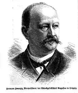Hermann Zwanzig war Kaufmann von Beruf und handelte mit Spitze. Diese Tätigkeit zwang ihn zu vielen Reisen in Deutschland, bei denen er auch viele Schachvereine kennenlernte, die er zum Beitritt zum neugegründeten Deutschen Schachbund aufforderte. Zwanzig selbst war Mitglied des Leipziger Schachvereins Augustea und dessen Kassierer.