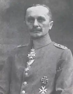 Den Anfang des Krieges verbrachte er durch in Dienste erlittenen schweren Herzleiden in ärztlicher Genesung in Bad Reichenhall. Er kommandierte noch das Reserve-Infanterie-Regiment Nr. 101 an der Westfront, wurde mit dem Ritterkreuz des Militär-St.-Heinrichs-Ordens ausgezeichnet, musste aber wegen erneuter gesundheitlicher Probleme 1915 als Oberst aus dem aktiven Dienst ausscheiden. Er diente trotzdem noch beim Stabe der Landwehr-Inspektion in Dresden, wo er in Anerkennung seiner Leistungen noch zum Generalmajor befördert wurde.[5]