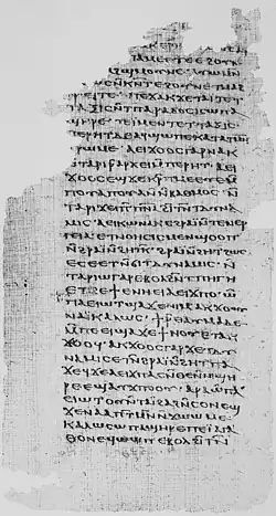 Eine Reihe von Fragmenten ist auf Papyrus und in Zitaten bei antiken Autoren erhalten geblieben. Vierzig Exzerpte von sehr unterschiedlichem Umfang enthält die Anthologie des spätantiken Gelehrten Johannes Stobaios; davon stammen 29 aus heute verlorenen Schriften. Weitere Zitate aus unbekannten hermetischen Werken sind bei den Kirchenvätern Laktanz und Kyrill von Alexandria zu finden. Reichhaltiges Material aus einer zuvor unbekannten hermetischen Schrift kam durch den Papyrus-Fund von Nag Hammadi im Dezember 1945 ans Licht, wurde aber erst 1971/72 durch eine Edition und ein Faksimile der Öffentlichkeit zugänglich gemacht.[12] Textbruchstücke aus anderen bislang unbekannten Werken sind in zwei Wiener Papyri und in einer Oxforder Handschrift des 13./14. Jahrhunderts überliefert.[13] Eine weitere Quelle sind die Hermetischen Definitionen, kurze Lehrsätze, die größtenteils nur in einer armenischen Übersetzung aus dem 6./7. Jahrhundert vorliegen. Diese Sätze waren für spirituelle Übungen bestimmt, mit denen die Hermetiker ihre geistigen Kräfte stärken wollten.[14]