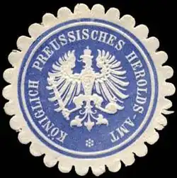Als eigenes Heroldsamt wurde im Reich erstmals 1706 im Königreich Preußen das Oberheroldsamt gegründet, es ging aber schon 1713/14 wieder ein. Am 14. März 1855 wurde es in Berlin als Adelsbehörde erneut gegründet, zuletzt mit einem Vorsitzenden und einem Heroldsmeister[2] an der Führungsspitze,[3] und am 31. März 1920 endgültig aufgelöst. Seine Hauptaufgabe waren die Vorbereitung von Nobilitierungen sowie adelsrechtliche Fragen, vor allem Feststellungen zur Zugehörigkeit zum Adel sowie die Namensführung.[4] Dabei war umstritten, ob seine Entscheidungen für Gerichte bindend waren.[5] Daneben fiel auch die kommunale Heraldik, also die Vergabe von Stadtwappen in den Aufgabenbereich des Heroldsamts. Ferner entschied es über den Gebrauch der königlichen Wappen. Seine Akten kamen 1920 an das Geheime Staatsarchiv in Berlin-Dahlem.