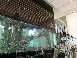 Der Eingangs- und Empfangsbereich im Concierge-Stil enthält ein 70.000-Liter-Aquarium mit rund 1.200 Fischen. Das Aquarium ist das größte Exemplar in Privatbesitz in Großbritannien und enthält über 60 Fischarten in einem vollständig nachhaltigen Ökosystem. Die Arten wurden von erfahrenen Biologen und Tierkuratoren ausgewählt, um Kompatibilität und Anpassungsfähigkeit an die Umwelt zu gewährleisten. Der Tank wird von einem Team von zwei hauptberuflichen Fischbegleitern betreut, die die Fische je nach Bedarf mit einer an natürlichen Inhaltsstoffen reichen Diät füttern und den Tank auf Wasserchemie und Fischgesundheit überwachen, sowie von zwei bis drei Teilzeittauchern, die die Dekoration und das Glas regelmäßig reinigen.