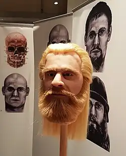 Mitarbeiter der Universitätsmedizin Göttingen nahmen eine plastische Gesichtsrekonstruktion vor. Dazu wurden mit Ölton die Gesichtsmuskeln auf dem mit Weichteilmarkern vorbereiteten 3D-Druck des Schädels modelliert. Die Kontur des Gesichts wird durch die Weichteilmarker und die Muskeln bestimmt. Die Form und Größe der Augen, der Nase und des Mundes wird von den Knochen bestimmt. Die Knochen bestimmen auch die Position der Ohren. Über die Form der Ohren musste aber spekuliert werden. Aus der Öltonbüste wurde ein Gipsabdruck gefertigt, mit dem dann ein Abguss aus Silikonkautschuk erstellt wurde, der dann in mehreren Schritten koloriert wurde. Die Haare von Kopf, Bart, Augenbrauen und Wimpern wurden einzeln in die Büste gewebt. Glasaugen, mit der Farbe die über die DNA-Analyse ermittelt wurde, komplettieren die Büste. Die Gestaltung der Haar- und Barttracht erfolgte auf der Grundlage von Münzfunden aus der damaligen Zeit.