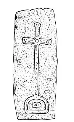 Grabplatte. Burgkirchenanlage von Pergkirchen in Oberösterreich (Austria). Zeichnung nach dem Original von Leopold Mayböck
