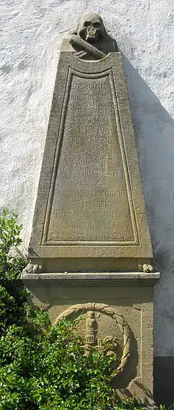 - ↑ a b Theobald Walter: Die Grabschriften des Bezirkes Oberelsaß von den ältesten Zeiten bis 1820. Verlag der J. Boltzeschen Buchhandlung, Gebweiler 1904, S. 195, archive.org