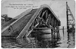 - ↑ Telefonüberwachung für eine Brücke. In: Lübecker Stadtzeitung. 25. März 2003, archiviert vom (nicht mehr online verfügbar) am 2. Dezember 2013; abgerufen am 19. November 2008. Info: Der Archivlink wurde automatisch eingesetzt und noch nicht geprüft. Bitte prüfe Original- und Archivlink gemäß Anleitung und entferne dann diesen Hinweis.