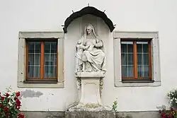 In einer Nische im Obergeschoß des Herrenhauses befindet sich eine von Johann Michael Flor aus Stuck gefertigte und 1770 unter Graf Leopold Maria von Dietrichstein aufgestellte Immaculata-Statue. Links vom Haupttor steht an der Mauer auf einem Volutensockel eine barocke Figurengruppe mit einer Darstellung der heiligen Anna mit der kleinen Maria aus dem Ende des 18. Jahrhunderts.