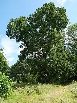 Bedeutende Bäume sind eine etwa 250 Jahre alte Stieleiche,[18] sowie Rotbuchen, Sommer-Linden und weitere Stieleichen.[19]