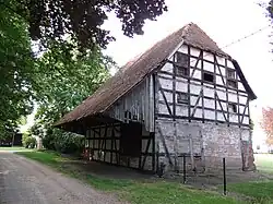 Dazu gehört auch ein zweigeschossiger denkmalgeschützter Speicher aus der Mitte des 19. Jahrhunderts in Fachwerk mit Putzausfachungen als Wandständerbau mit einem Halbkrüppelwalmdach, gedeckt mit Ziegelschindeln (West) und roten Hohlpfannen (Ost), später ergänzt durch einen weiten Dachüberstand.[2]