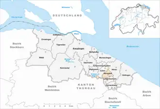 Diese Abschnitte basieren weitgehend auf dem Eintrag im Historischen Lexikon der Schweiz (HLS), der gemäss den Nutzungshinweisen des HLS unter der Lizenz Creative Commons – Namensnennung – Weitergabe unter gleichen Bedingungen 4.0 International (CC BY-SA 4.0) steht. - ↑ Ortschaften- und Siedlungsverzeichnis. Kanton Thurgau, Ausgabe 2005. Auf der Website der Dienststelle für Statistik des Kantons Thurgau (PDF; 1,7 MB), abgerufen am 28. April 2020.