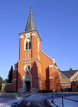Die ursprüngliche Kirche wurde von 1887 bis 1889 nach einem Entwurf des Architekten Wilhelm Hector (Saarbrücken-St. Johann) im neoromanischen Stil erbaut. Da sie, wie nicht selten auch in anderen Orten, bis zum Ende der 1960er Jahre aufgrund der stetig wachsenden Gemeindemitgliederanzahl in ihrer Größe bei weitem nicht mehr ausreichte, wurde sie von 1968 bis 1972 vergrößert. Diesmal wurde der Architekt Peter Van Stipelen beauftragt. Chorraum und ein Langhausjoch wurden abgetragen und stattdessen ein neues ausladendes Querhaus errichtet. Die Apsis wurde nun um einige Meter versetzt wiedererrichtet.