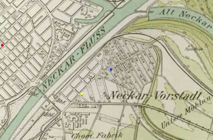 Die Neckarstadt liegt, durch den Neckar getrennt, auf der gegenüberliegenden Seite der Mannheimer Innenstadt. Ursprünglich befanden sich dort die Neckargärten. Mit der wachsenden Einwohnerzahl der Stadt im 19. Jahrhundert wurde das alte Stadtgebiet zu klein, so dass allmählich die Wohnbebauung auf die andere Neckarseite übergriff. 1871 wohnten dort bereits 2.200 Menschen, davon 1.500 Katholiken, für deren Betreuung der Pfarrer der Unteren Pfarrei St. Sebastian zuständig war. 1876 bis 1878 wurde an der Ecke Mittelstraße/Laurentiusstraße nach Plänen von Wilhelm Lutz eine Notkirche erbaut, die dreischiffige St.-Laurentius-Kirche,[1] und 1889 eine Kuratie eingerichtet. Als zweiter Kurat wirkte hier 1895/96 der spätere Freiburger Erzbischof Karl Fritz.