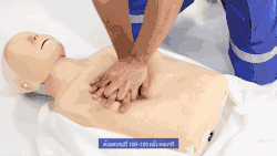 Mit der Herzdruckmassage kann der Restsauerstoff im Blut zirkulieren und so bis zum Eintreffen des Rettungsdienstes bzw. fachlicher Hilfe die Überlebenswahrscheinlichkeit entscheidend erhöht werden. Auch ohne Ersthelferkenntnisse ist es dem medizinischen Laien so möglich, mittels der Basismaßnahmen (basic life support) Leben zu retten oder zumindest zu verlängern. Er soll prüfen, ob die bewusstlose Person noch normal atmet, unter der europaweit gültigen Notrufnummer 112 den Rettungsdienst rufen sowie bei Erwachsenen auf einem nicht nachgebenden Untergrund fest und 100 bis 120 Mal pro Minute das Brustbein in der Mitte des Brustkorbs etwa fünf Zentimeter eindrücken und wieder komplett entlasten und nicht damit aufhören, bis Hilfe eintrifft.[1][2][3] Die Beatmung ist nicht die wichtigste Maßnahme bei Menschen mit plötzlichem Herz-Kreislauf-Stillstand. Zentral und effektiv ist die Herzdruckmassage. Nach Möglichkeit sollte sie durch eine Beatmung (z. B. Mund-zu-Mund-Beatmung) ergänzt werden. Bei Erwachsenen wird empfohlen, 30 Mal zu drücken und danach zweimal zu beatmen. Zur Findung des Rhythmus eignen sich unter anderem[4] Stayin’ Alive oder Highway to Hell.[5]
