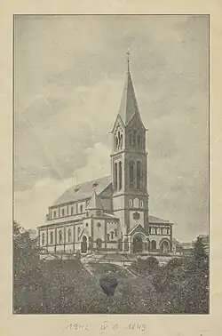 Erbaut wurde die Kirche in den Jahren 1901/02 nach Plänen von Julius Zeißig, die Benediktion war am 28. September 1902. Die feierliche Kirchweihe erfolgte am 10. September 1905. Kirche und Pfarrei wurden unter das Patrozinium des Heiligsten Herzens Jesu gestellt, das in der katholischen Liturgie als Mitte der Schöpfung und Quelle der Sakramente verehrt wird. Die reiche Originalausmalung und die Buntglasfenster wurden im Zweiten Weltkrieg irreparabel beschädigt. Der Bau selbst blieb jedoch unversehrt. In den Nachkriegsjahrzehnten wurden mehrere Renovierungs- und Umgestaltungsmaßnahmen durchgeführt, die von den begrenzten finanziellen Möglichkeiten mitbestimmt waren.