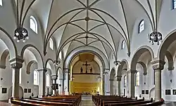 Das Innere präsentiert sich in der Gestalt der jüngsten Renovierung von 2008 unter der Bauleitung von Architekt Christian Schaufel. Die Architekturgliederung wurde dabei stilgerecht hervorgehoben, die originalen Ausstattungsstücke, soweit noch vorhanden, in eine liturgie- und zeitgemäße Neuordnung integriert.
