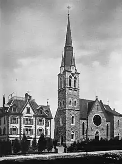 In den Jahren 1894/1895 wurde das erste Pfarrhaus nach Plänen der Architekten Chiodera und Tschudy unmittelbar südwestlich der Kirche erbaut.[5]