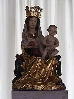 Die Marienstatue unter der Orgelempore ist eine Kopie der „Madonna von Seeon“ (Original im Bayerischen Nationalmuseum in München).[1]