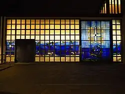 1964 wurde die künstlerische Gestaltung der Glasfenster in der Taufkapelle durch die Firma Preis abgeschlossen. Die Kirchenfenster im Eingangsbereich des kleineren Kirchenraumes mit der Darstellung des „Himmlischen Jerusalem“ wurde durch A. F. Gangkofer gestaltet. Durch technische Probleme musste das Kunstwerk bereits 1969 rückgebaut und durch eine provisorische Industrieverglasung ersetzt werden. 1996 erfolgte durch Graham Jones aus London eine Neugestaltung zum gleichen Bildthema.[1]