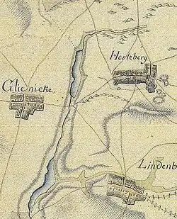 - ↑ a b c d Landesvermessung und Geobasisinformation Brandenburg : Brandenburg-Viewer, Digitale Topographische Karten 1:10.000 (Menu – „Mehr Daten“ – anklicken und entsprechend auswählen; zu den Gemarkungsgrenzen „Liegenschaftskataster“ und dort „Gemarkungen“ zuschalten.)