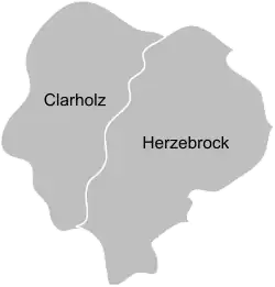 Nach § 3 der Hauptsatzung gliedert sich die Gemeinde in die beiden Ortschaften Herzebrock (10.448 Einwohner) und Clarholz (6.440 Einwohner) (Stand: 1. Januar 2022[6]), die den beiden ehemaligen Gemeinden entsprechen, aus denen die heutige Gemeinde 1970 gebildet wurde.
