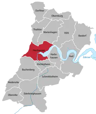 - ↑ a b c d e Herzhausen, Landkreis Waldeck-Frankenberg. Historisches Ortslexikon für Hessen. (Stand: 8. Juli 2020). In: Landesgeschichtliches Informationssystem Hessen (LAGIS).