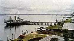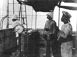 Der ehemalige deutsche Regierungsdampfer Herzogin Elisabeth als französisches Hilfspatrouillenboot Margared Elisabeth vor Kamerun, 1916