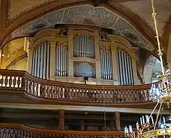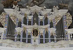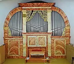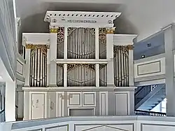 II/P | 23 | Neubau unter Verwendung von Teilen der Vorgängerorgel von Johann Heinrich Ruppert (1741), unter Mitarbeit des Bruders Georg Andreas und seiner Söhne Ernst Siegfried und Johann Michael II., 2011 restauriert durch Orgelbau Kutter → Orgel |