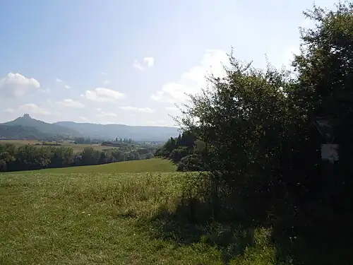![]() NSG Hessenbol: Heckengebüsch und Blick zum Hohenzollern mit Burg | ||
