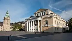 1817 hatte Georg Moller das Theater in klassizistischem Stil errichtet. 1879 wurde es umgebaut, im Zweiten Weltkrieg beim Luftangriff auf Darmstadt zerstört. Die wenigen an den Originalzustand wieder angenäherten historischen Räume, wie der Karolinensaal, werden durch Vorträge und andere kulturelle Veranstaltungen öffentlich genutzt.