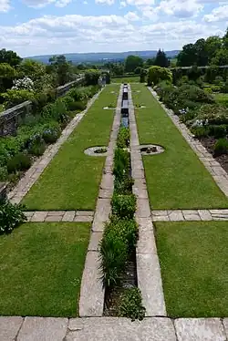 So entstand ein formaler Garten, bei dem sich Lutyens von stilistischen Gartenelementen verschiedener Epochen inspirieren ließ. Das Konzept der quadratisch geometrisch gegliederten Grundfläche mit seitlich begrenzenden und höher liegenden Terrassen wurde beispielsweise bereits im 16. und 17. Jahrhundert verwendet.[4] Der erhöht liegende Dutch Garden wird in der heutigen Betrachtung des Gartens als Reminiszenz an den niederländischen Einfluss auf englische Tudor-Gärten interpretiert.[4] Die ebenfalls seitlich vom Hauptparterre liegende Orangerie wiederum ist in ihrem Baustil ebenfalls historisierend und kopiert bewusst den Baustil Christopher Wrens. Besonderen Wert legte Lutyens auch auf die Blickachsenbeziehung in den einzelnen Gartenarealen, die bereits bei italienischen Vorbildern der Renaissancezeit wie beispielsweise der Villa Lante zu finden sind.[5] Die vorhandenen Wasserbecken und -kanäle erinnern wiederum an Gartenkonzepte des typischen Architekturgartens des 19. Jahrhunderts.