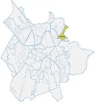 Die bewaldete Bergkuppe erstreckt sich nördlich der alten Siedlung Gnigl nach Osten hin, an ihrem Nordrand liegt das zu Hallwang gehörende Esch-Mayrwies, in dessen Gemeindegebiet genau an der Grenze zu Koppl auch die höchste Erhebung des Heuberges liegt.[1] Der Höhenzug bildet den Nordrand der Alpen und verläuft östlich als Petersberg bis in die zu Eugendorf gehörende Gegend um Gottsreut (Hochgottsreit) (Sommeregg 831 m ü. A.), von wo der Rücken über Eugendorfer Berg (800 m ü. A.) und Schwaighofenberg nach Oberplainfeld läuft. Von dort zieht sich der Alpenrandzug über die Talwasserscheide Enzersberg nordwestlich zum Flyschrücken des Kolomannsberges.