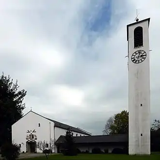 Am 12. Oktober 1953 wurde der Grundstein für die katholische Kirche gelegt, die nach dem Heiligen Korbinian benannt wurde. 11 Monate später, am 12. September 1954, wurde die Kirche durch den Weihbischof Johannes Neuhäusler eingeweiht. Am 23. Januar 1955 erfolgte die Glockenweihe.