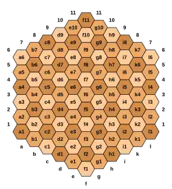 - Glinskis Hexagonal Chess Java-Applet für Hexagonalschach nach Gliński