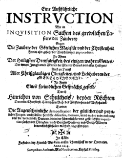 - ↑ Heinrich von Schultheiß: Eine Außführliche Instruction Wie in Inquisition Sachen des grewlichen Lasters der Zauberey gegen Die Zaubere der Göttlichen Majestät und der Christenheit Feinde ohn gefahr der Unschuldigen zu procediren … Köln 1634, S. 467