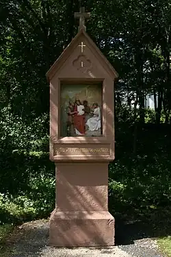 Der Altar von Seibert Maur aus Leudersdorf wird von einer Pietà dominiert, die aus einer Trierer Werkstatt stammt. Rechts und links stehen Statuen des hl. Leonhard und Johannes des Täufers. Die doppelflügelige Tür wurde im Zuge der Restauration durch den Schreiner Alois Daniels aus Bodenbach als Stiftung (zum Dank für unbeschädigte Rückkehr aus der Schlacht von Stalingrad und anschließender sowjetischer Kriegsgefangenschaft) angefertigt.