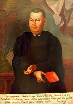 Am 28. Februar 1498 wurde Hieronymus Biechelberger zum Abt gewählt. Der Bürgersohn aus Dinkelsbühl trat schon unter Abt Jodokus Bruder in den Konvent ein. Er übte bis zur Abtswahl mehrere klosterinterne Ämter aus, so die Funktion des Großkellerers. In Georg Geisenhofs Beschreibung über das Kloster ist es seinem Geschick zu verdanken, dass der Neubau der Kirche schon in der kurzen Zeit von sieben Jahren beendet werden konnte.[1] Der Abt ließ den Hochaltar der Stiftskirche vollenden und die Pfarrkirche in Reinstetten erweitern.